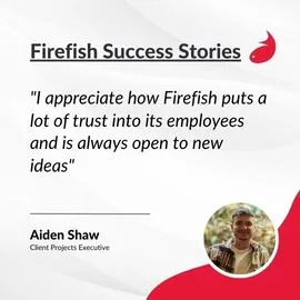 Aiden Shaw is one of our newer Fish – having started only in April of 2022, he already made an incredible impact at Firefish and had a chance to explore different roles within the company. Currently, he’s found his home in the Customer Project Team, managing our clients’ inquiries and supporting them on their journey with Firefish - however, this isn’t where he started his own Firefish journey!